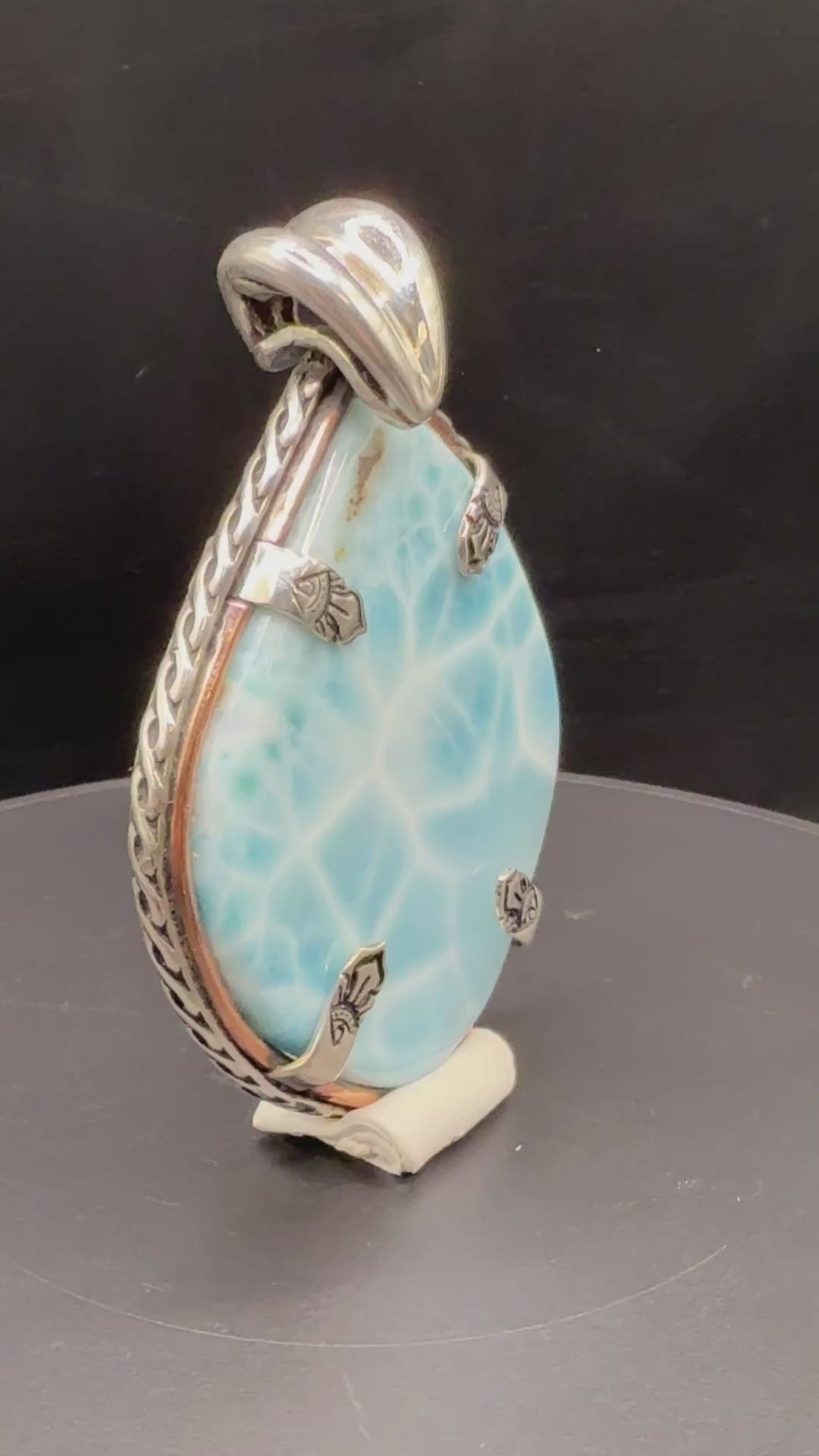 This statement piece was handmade in Sterling Silver and Copper with handmade prongs featuring a sunflower petal. This high quality Genuine Larimar is from the Dominican Republic. This piece will last a lifetime and is something one will be proud to have as a family heirloom. Handcrafted with intention & positivity.
